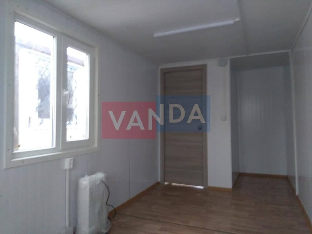 Контейнер состоит из металлического сварного основания. Стены изготовлены из сэндвич-панелей с прокладкой утеплителя. Крыша покрыта крашенным холоднокатаным металлом 1,2 мм. Помещение обустроено пароизоляцией при помощи технической пленки, которая проложена на полу и потолке. Внутренняя облицовка потолка выполнена из ПВХ-панелей, пол – из шпунтованной доски. Вход в помещение оборудован запирающейся металлической дверью.